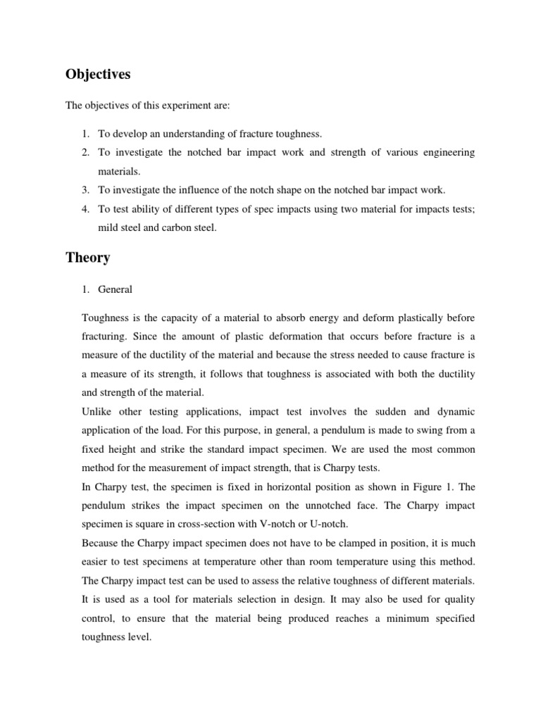 Impact Test Lab Report Pdf Title Impact Toughness Of Metallic Materials Objective Study The Principles Of Brittle Fracture In Mild Steels Understand Course Hero